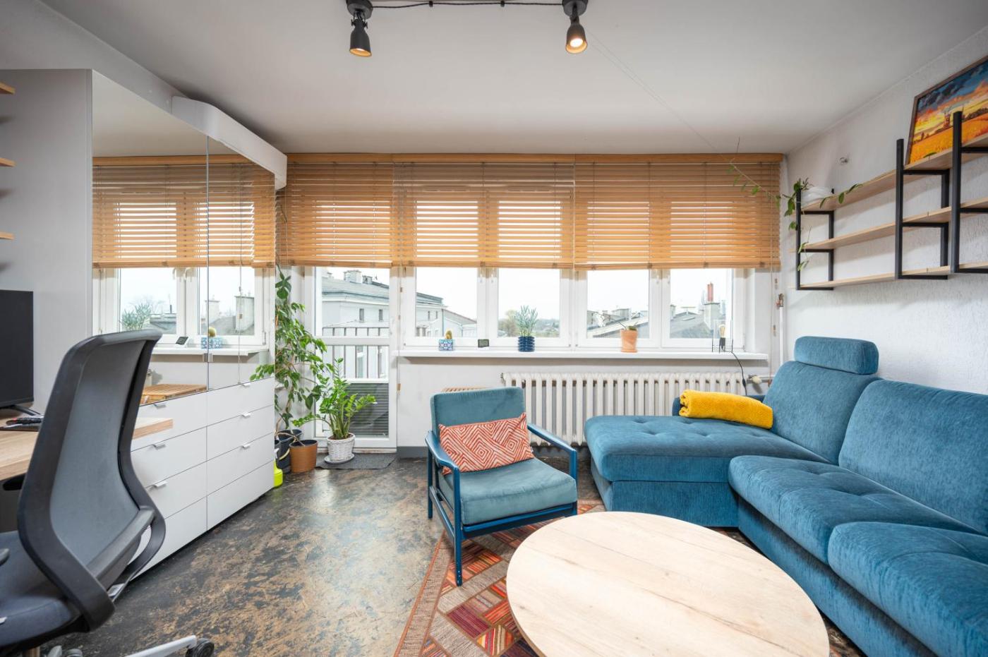 Studio. The studio provides air conditioning, a washing machine, as well as a private bathroom featuring a shower and a hairdryer. In the fully equipped kitchen, guests will find a stovetop, a refrigerator, kitchenware and a microwave. The studio features a flat-screen TV, a dining area, a wardrobe, an electric kettle as well as city views. The unit offers 1 bed. Studio - 2 osobowy. Powierzchnia pokoju ok.: 24 mkw.